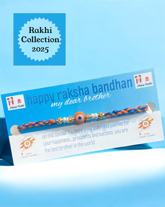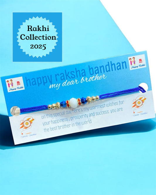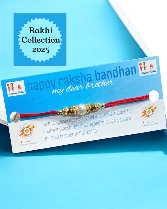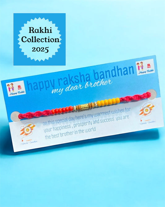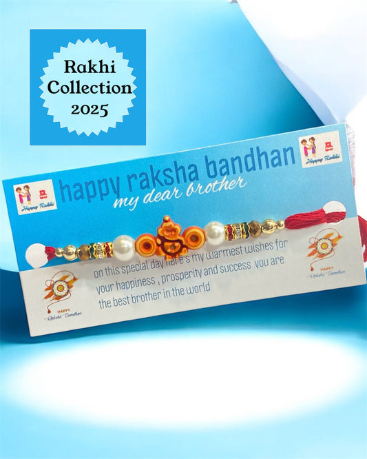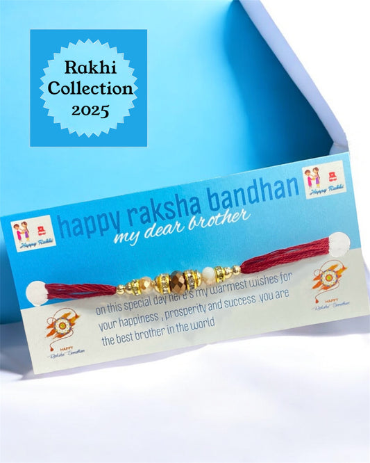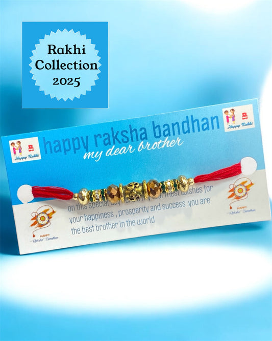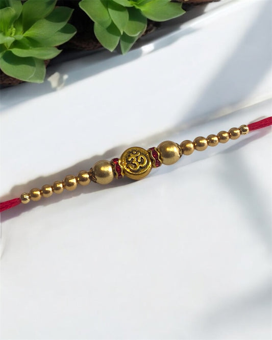 Designer Rakhi 2025 – Om Beads Rakhi with Glass & Golden Beads on Red Thread | Raksha Bandhan for Brother