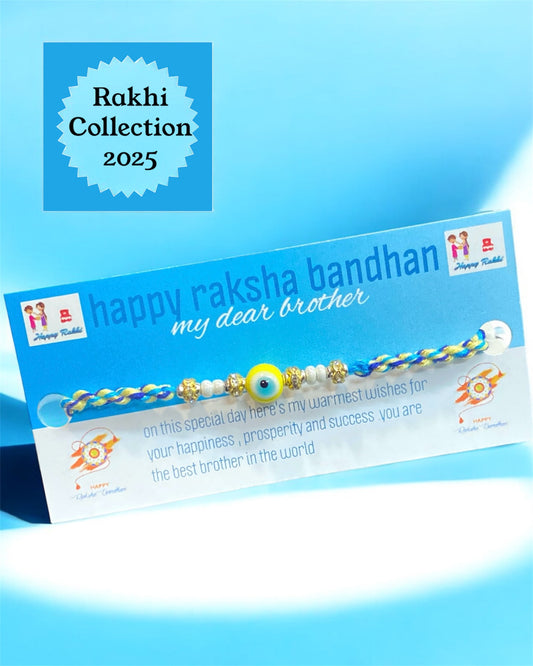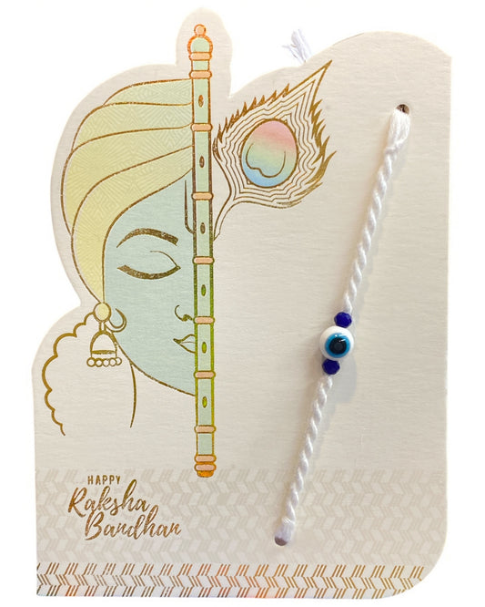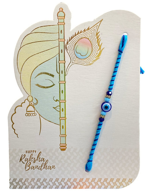 White Evil Eye Rakhi 2025 – White Thread with Blue Beads – Style Code 1213