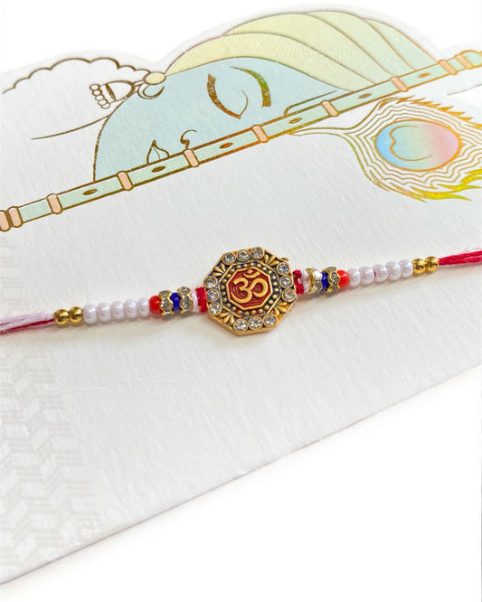 Fancy Designer Rakhi with OM Pendant | Red Thread | UK Supplier | Wholesale & Retail Rakhi Seller Near Me