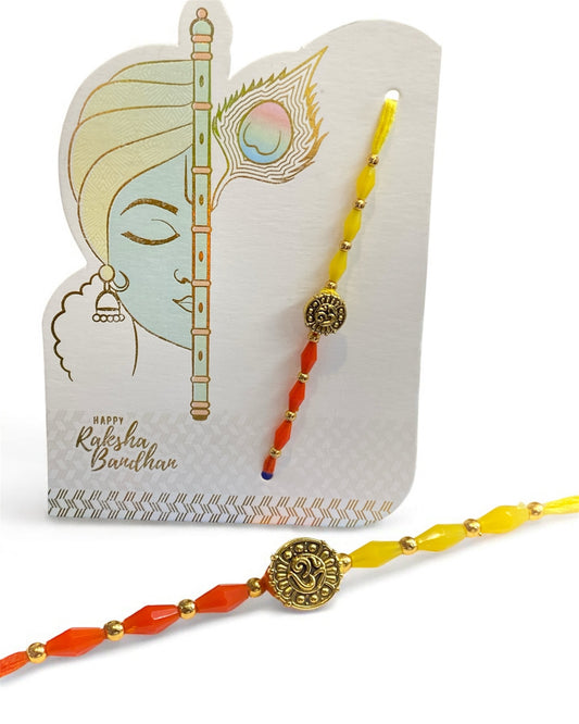 OM Charm Rakhi 2025 – Red/Gold & Orange/Yellow Two-Tone – Style Code 1510