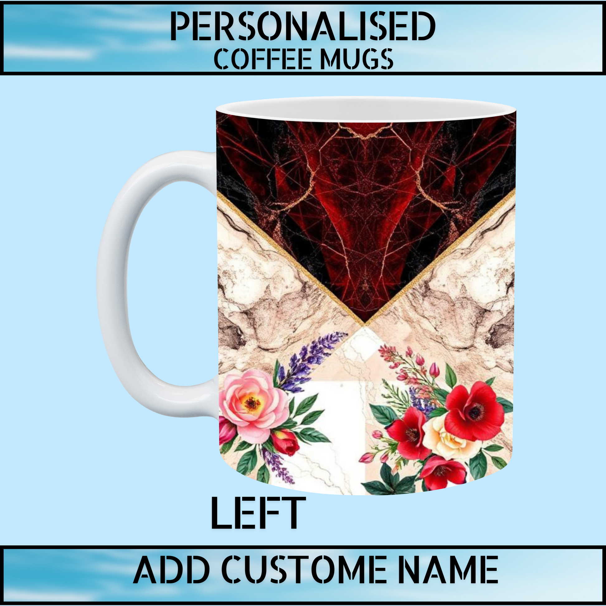 Add a bold and elegant touch to your coffee or tea time with this Red & Maroon Marble Floral Personalised Name Coffee Mug, designed with rich, warm tones for a premium look.