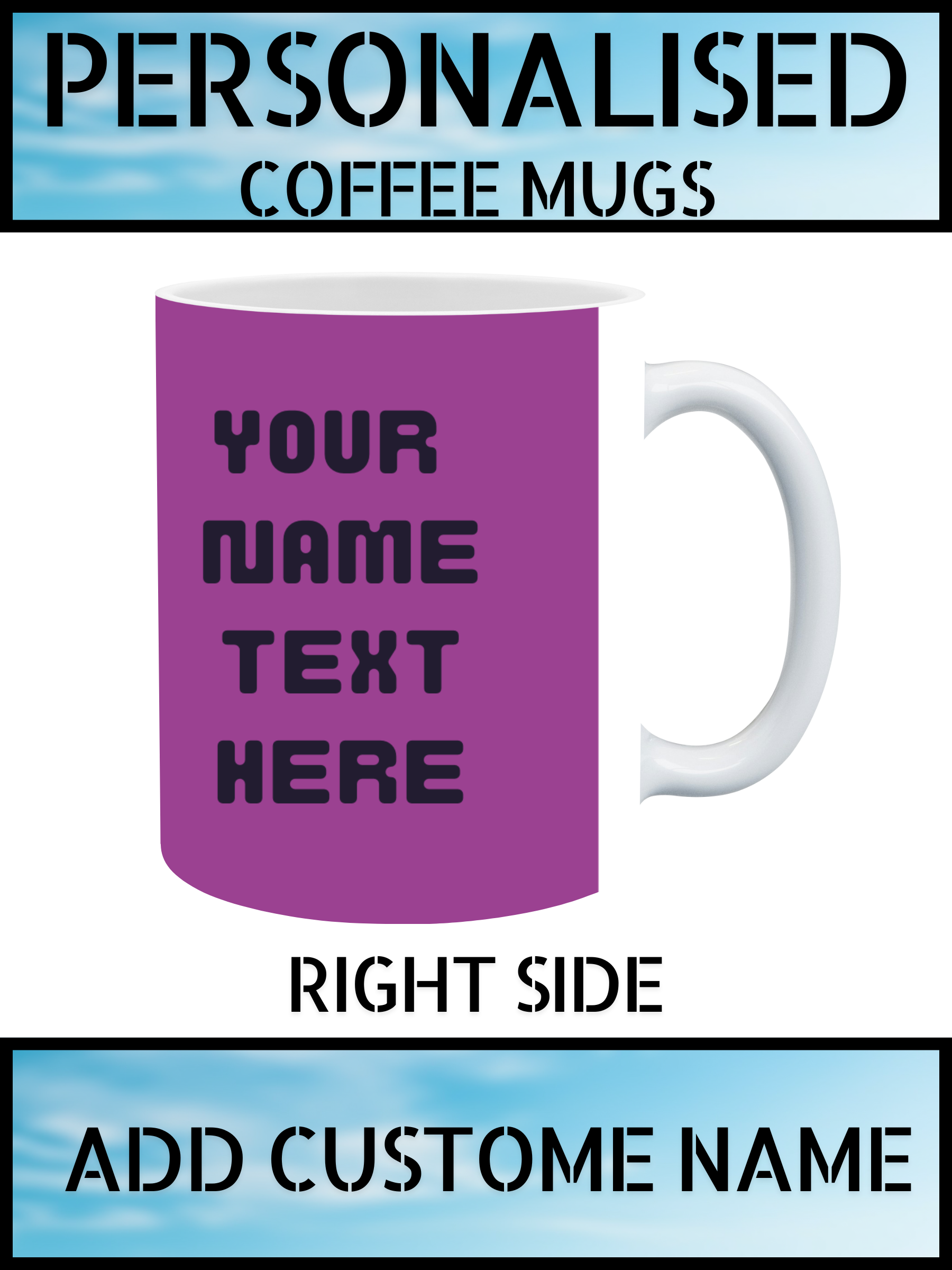 Shop high-quality ceramic gift mugs from a trusted Wolverhampton-based UK supplier. This personalised coffee mug can be custom printed with a name or short text, making it a thoughtful gift for any occasion or a stylish everyday mug.
