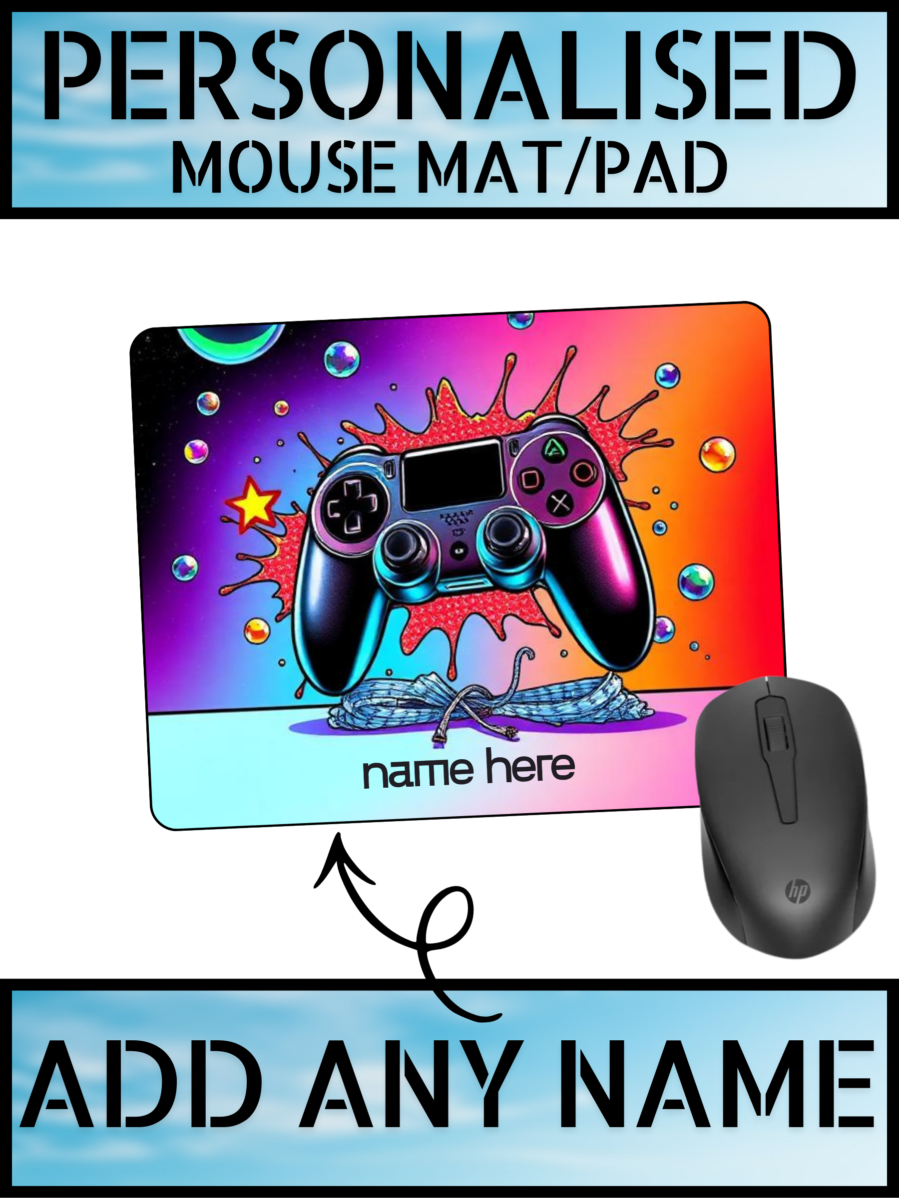 You can add your name to the mouse pad exactly as shown in the product images — making it a perfect personalised gift for gamers.