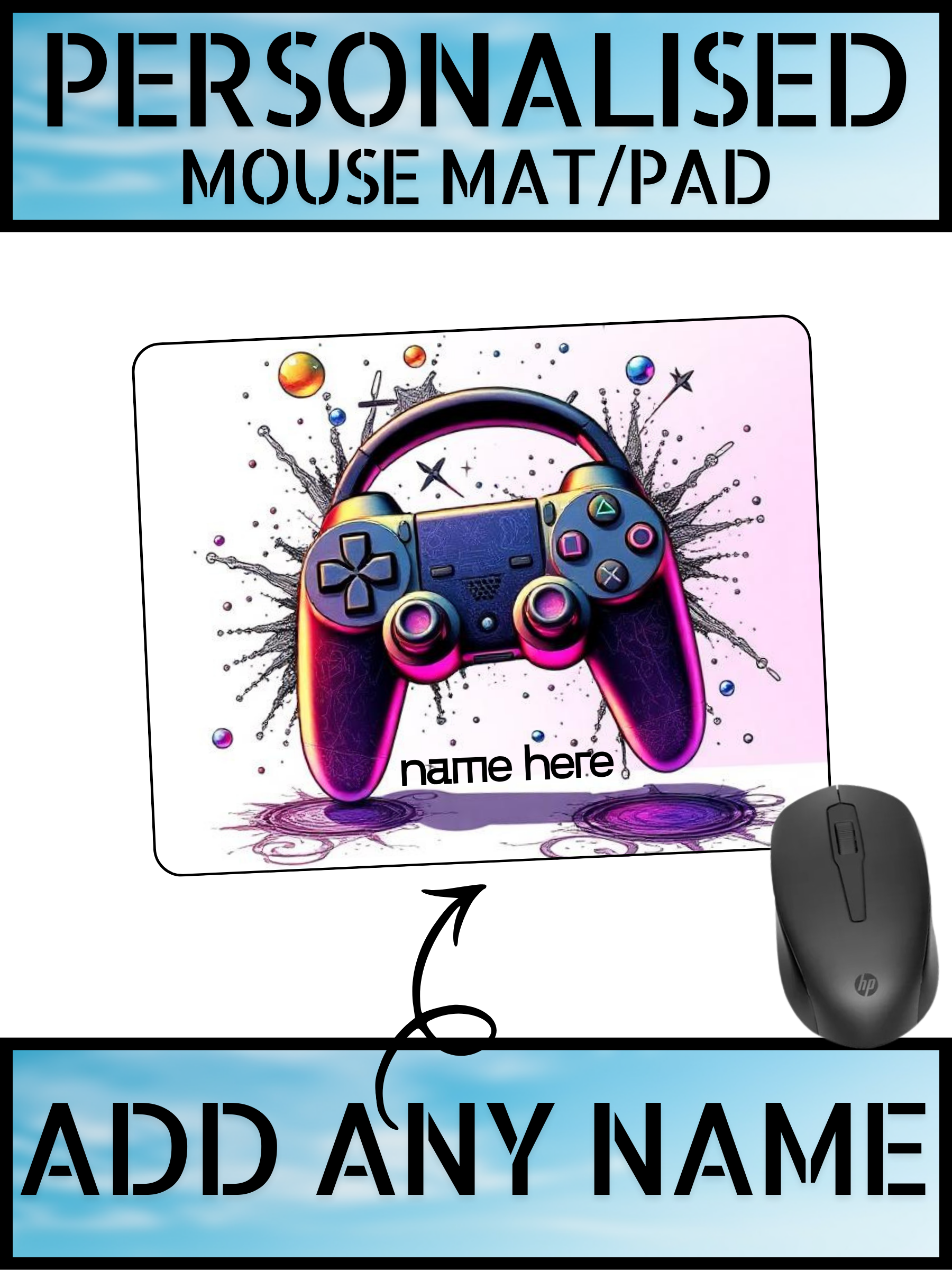 You can add your name to the mouse pad exactly as shown in the product images — making it a perfect personalised gift for gamers.