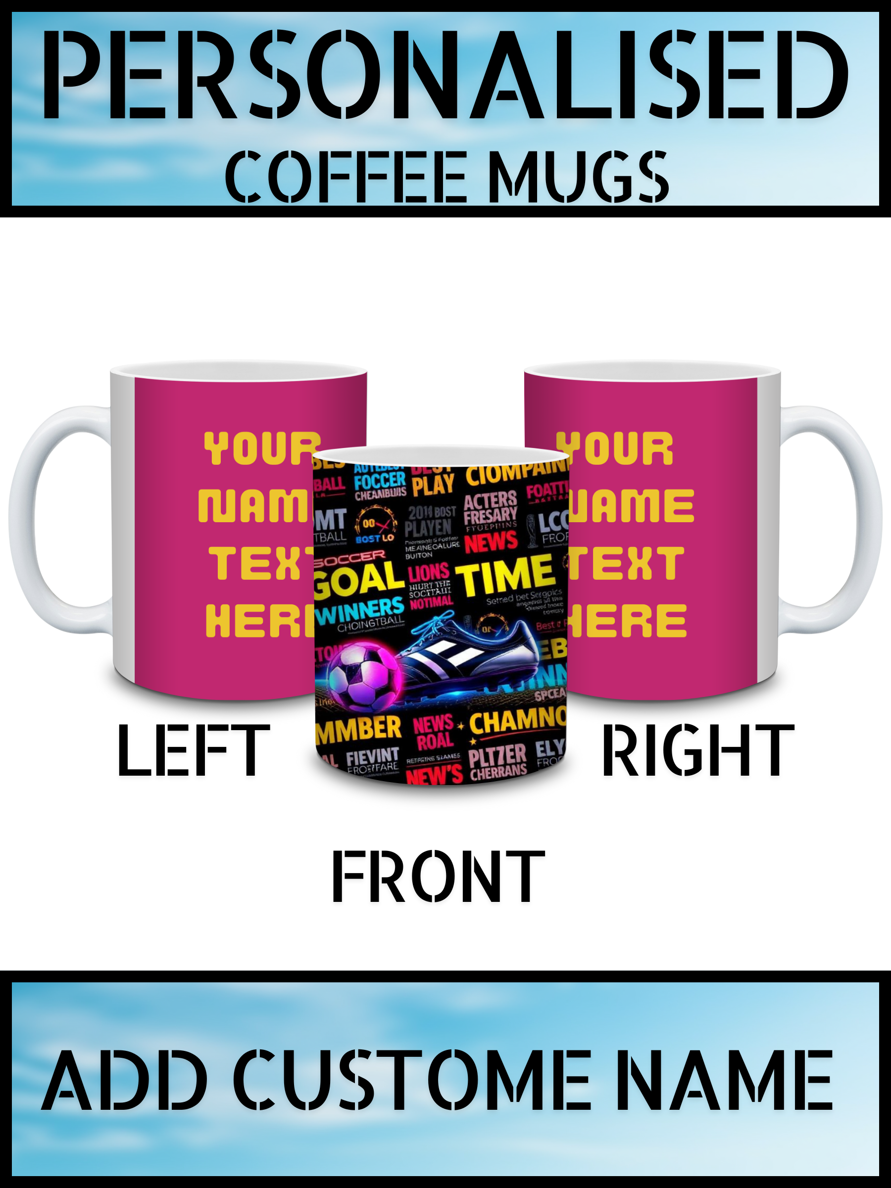 Personalise your mug with a name, message, or design to make a thoughtful gift or a unique everyday coffee mug. Ideal for birthdays, special occasions, work mugs, or personalised gifts, our mugs combine durability, clarity, and style.