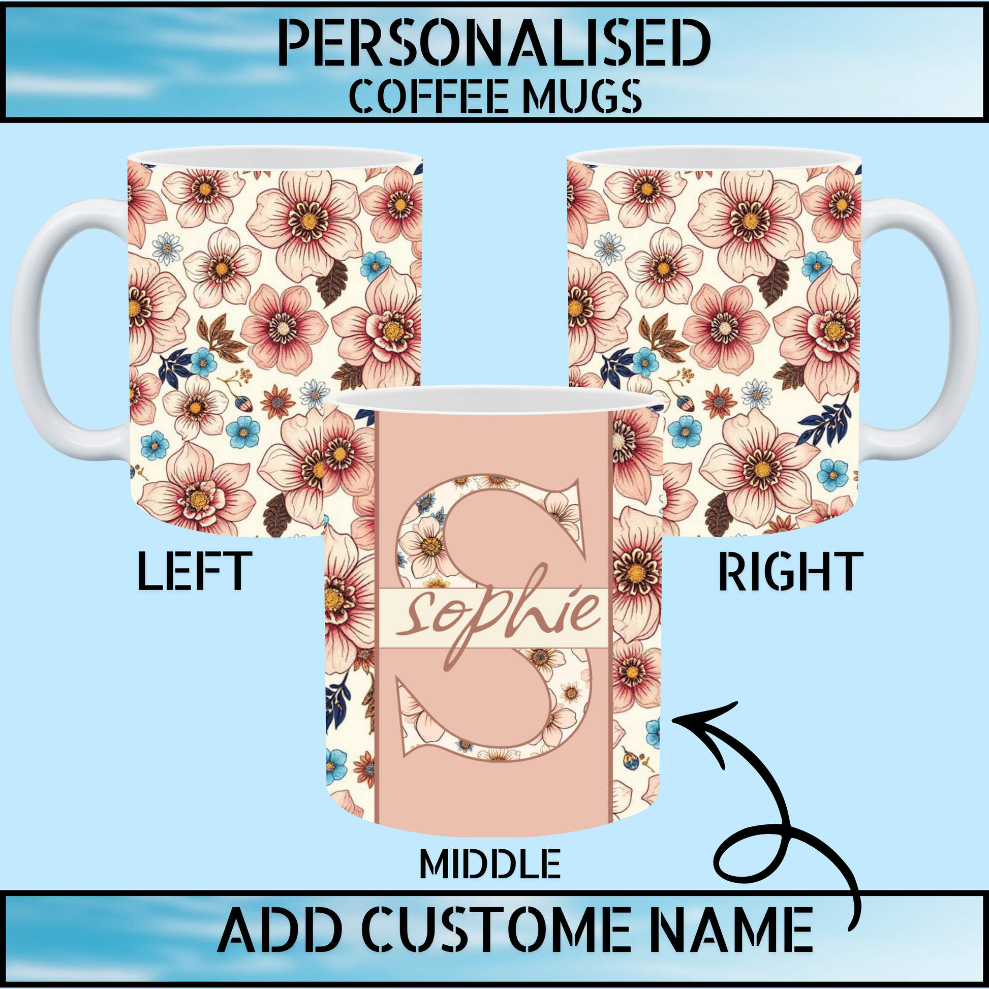 Delight someone special with this Floral Initial Personalised Name Mug, featuring soft, elegant floral prints and a clean, modern design.